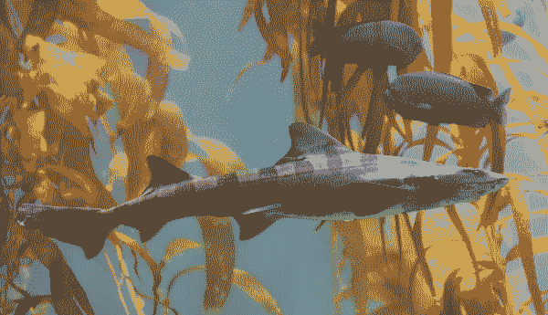leopard shark... da Good Boy of the shark world. he loves to eat craps and shrimbs and is 1 of if not the most gentle specie of shark on earth. they grow to be about one 2 one and a half meter long (~3-5 feet) and can live up to 20 years in captivity. i think theirs a conspiracy dat da freaking shark named after a kind of cat also lives about as long as house cat can. anyway's theyre very shy and quick to run away, so please don't bully them. thank u